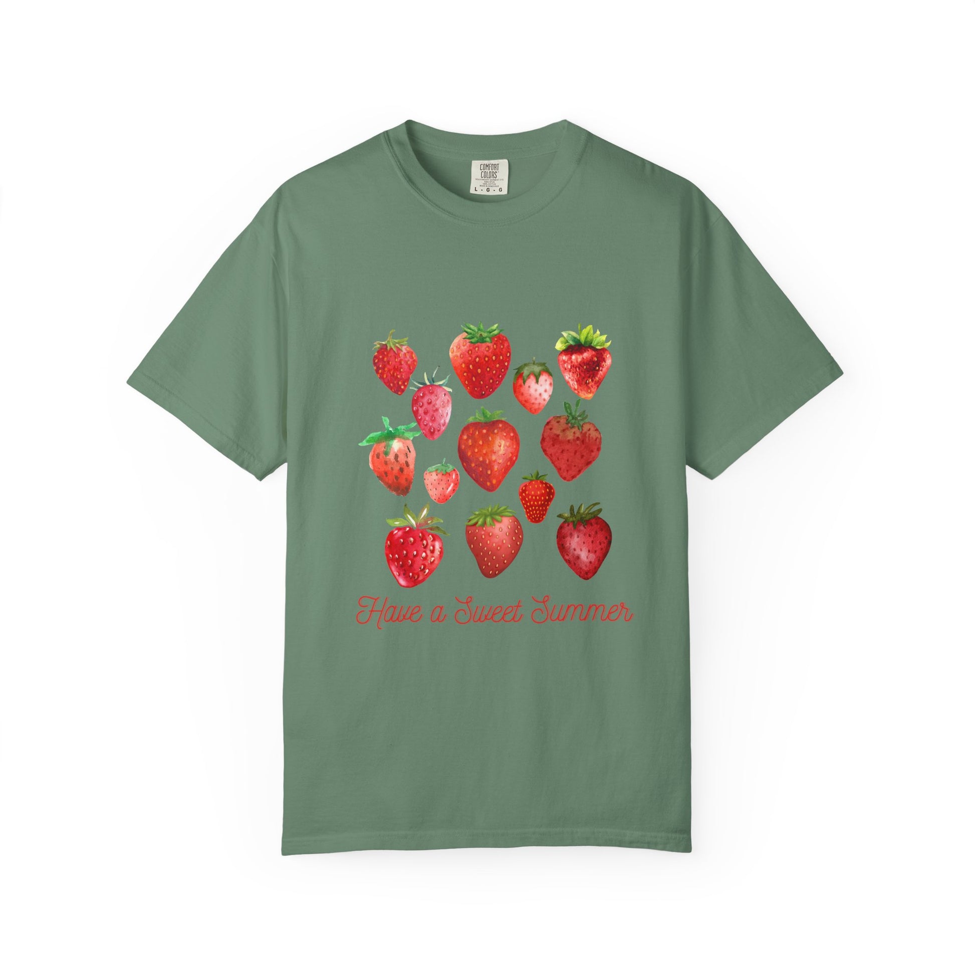 Squeeze every drop out of summer with this dreamy strawberry tee! Itβs giving fruit stand meets retro road trip. Embrace sunshine and sweetness with the Sweet Summer Strawberry Tee! This soft, high-quality shirt features a playful vintage design bursting with strawberry charm. Perfect for warm days, picnics, and strawberry fields forever. π