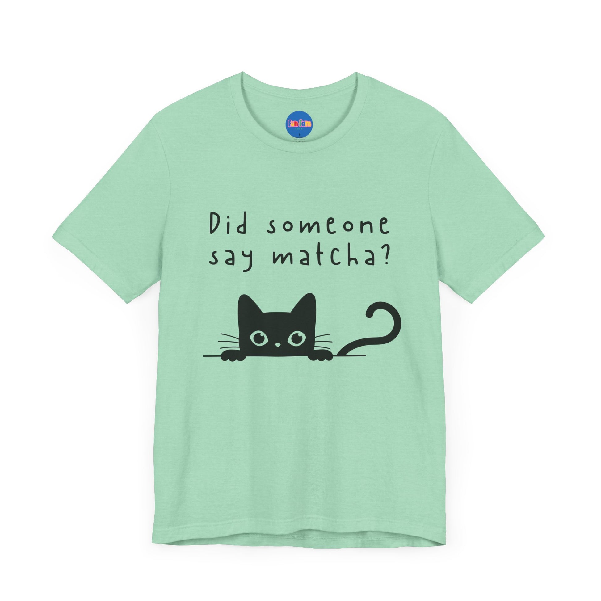Calling all cat lovers and matcha fans! This mint-green tee features a wide-eyed kitty peeking out with one very important question: βDid someone say matcha?β Itβs playful, comfy, and paws-itively perfect for tea breaks, chill days, and sipping your favorite green treat in style.