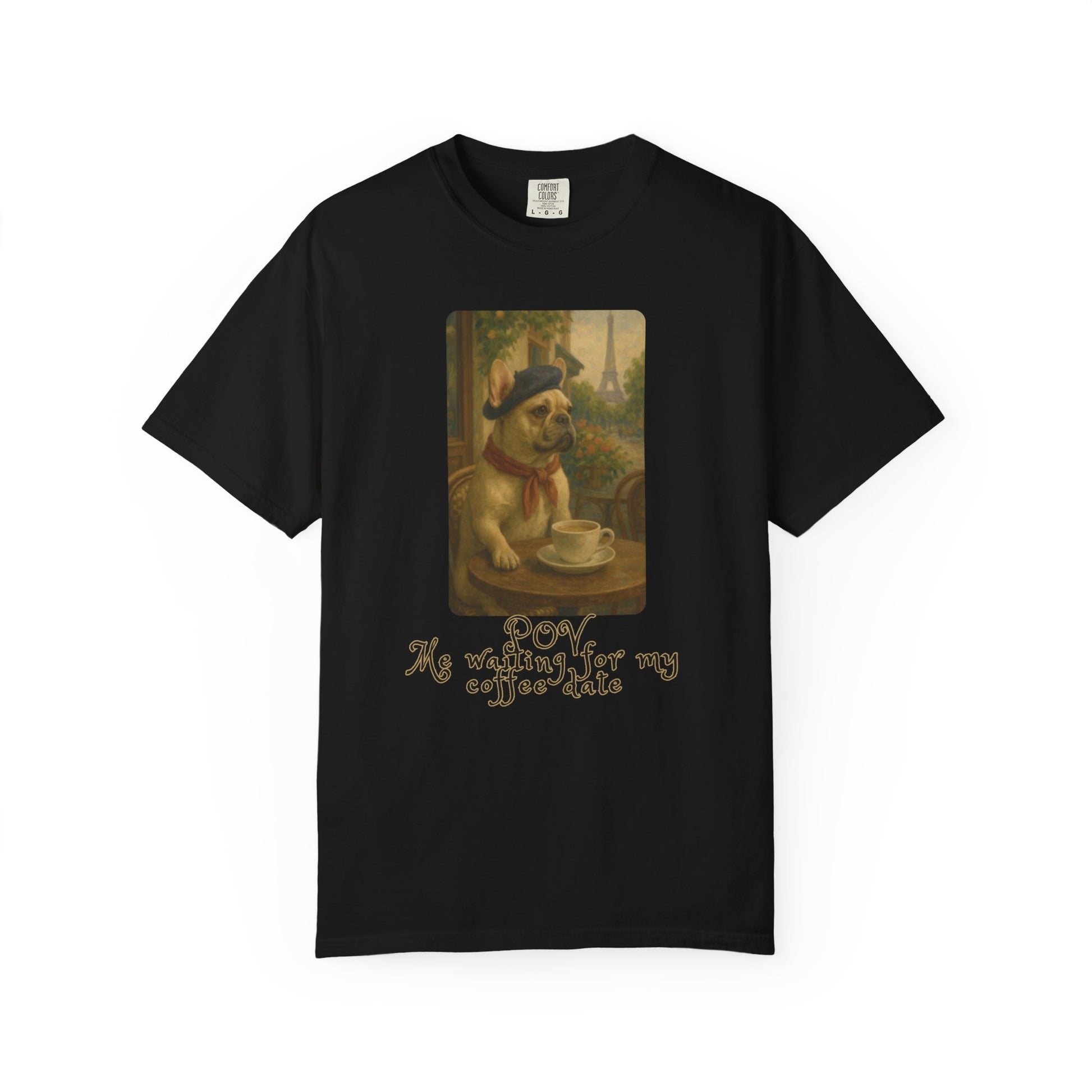 Meet your new favorite tee featuring a très chic French bulldog in Paris, patiently waiting for love… or maybe just their cappuccino. With vintage postcard vibes and meme-worthy energy, this design is tres magnifique for coffee lovers, dog parents, or anyone who’s ever been ghosted at a café.